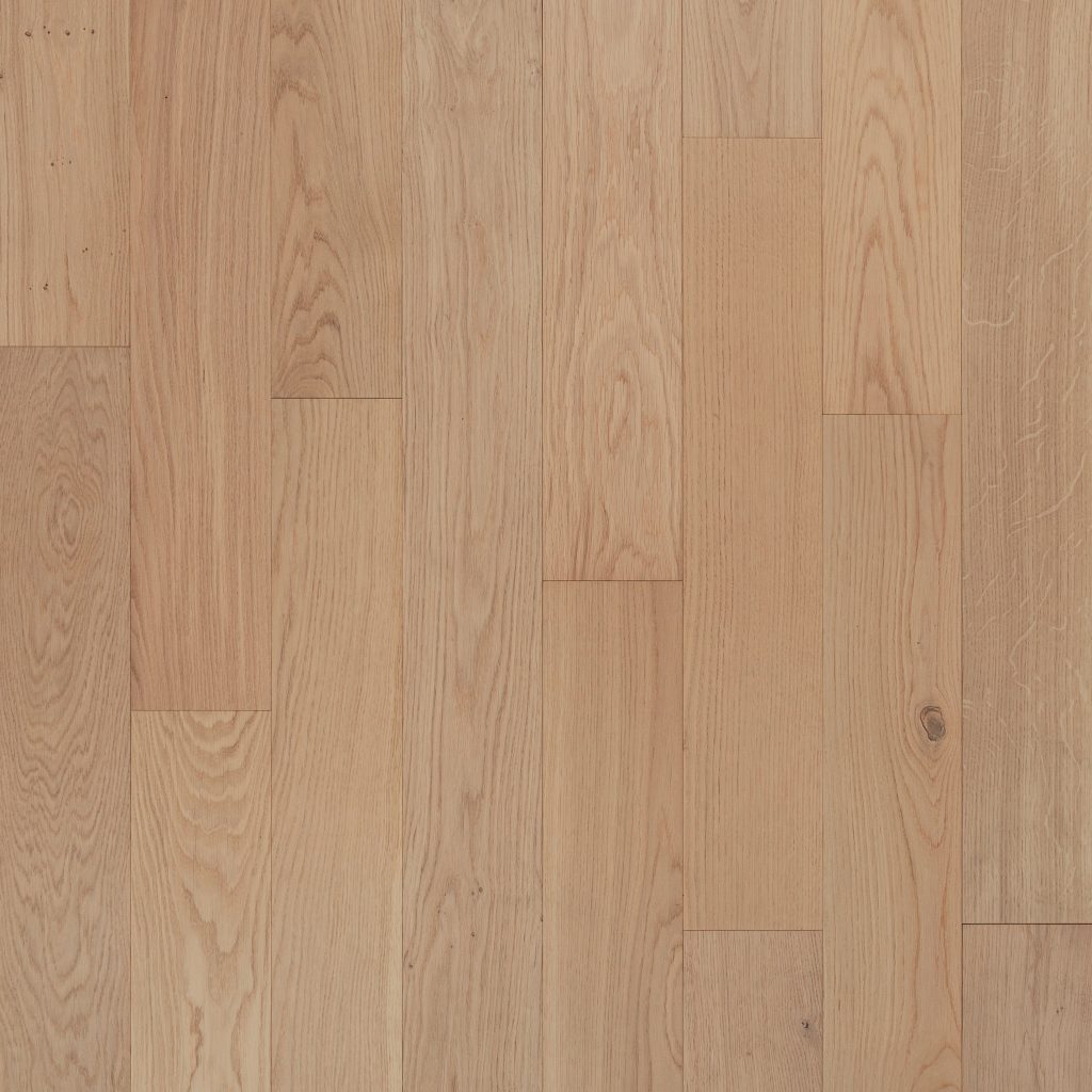 พื้นไม้จริง เป็นไม้เต็มแผ่นที่ตัดจากท่อนไม้โดยตรง ให้ภาพลักษณ์ที่เรียบ หรู และต่อเนื่อง เห็นลายไม้ธรรมชาติชัดเจนแบบไร้รอยต่อย่อย โครงสร้างแข็งแรง สามารถขัดและรีโนเวตได้หลายรอบ อายุการใช้งานยาวนานมาก แต่ต้องการงบประมาณสูงกว่า และต้องควบคุมการติดตั้งอย่างมืออาชีพเพื่อรองรับการหด–ขยายตัวของไม้ตามสภาพอากาศ